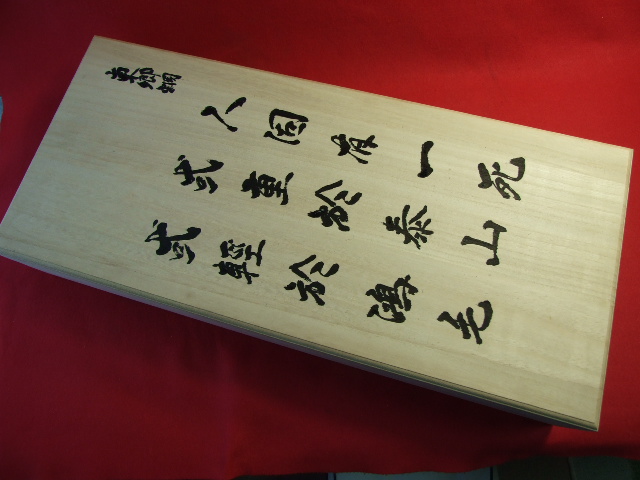 It comes in a specially ordered 4 sun 5 bu box, signed and stamped (stamped upon request). Dad's calligraphy on Kiri box. I think he did a great job this time!!!